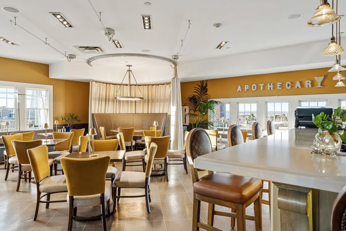 The Apothecary Rooftop Lounge is a vibrant gathering spot with panoramic views of the mountains, downtown city lights and enchanting Southwest sunsets, where you can enjoy custom seasonal drinks and unique small plates.