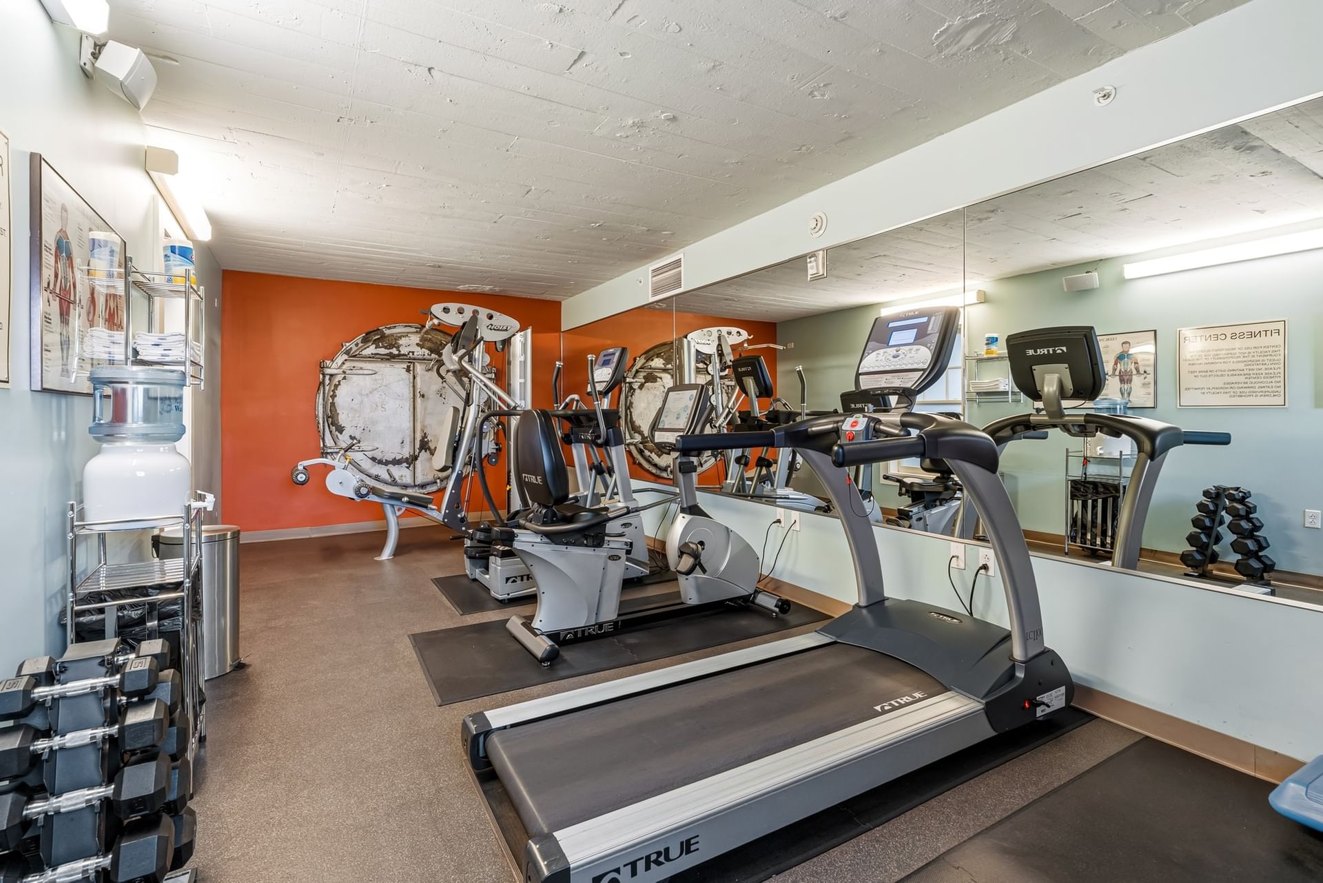 Our fitness room features an elliptical trainer, treadmill, stationary bike and weight machine, as well as an outdoor hot tub.